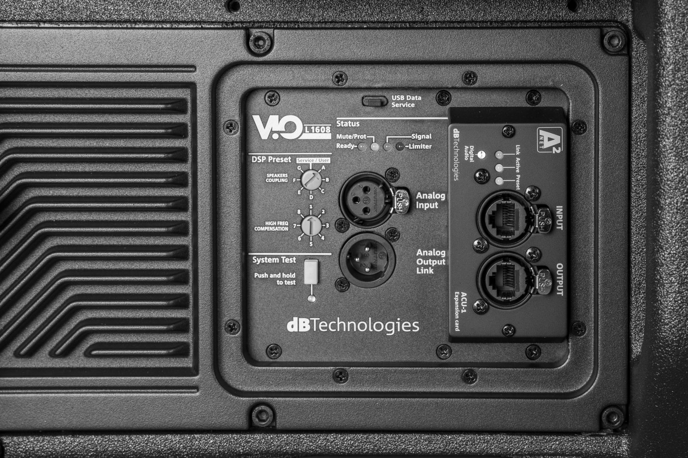 Po prvý raz v module série VIO je štandardnou súčasťou aj oceňovaný protokol A2Net, ktorý umožňuje vysokokvalitnú digitálnu distribúciu audia a kompletné ovládanie cez Aurora Net. Ako súčasť ekosystému VIO profituje L1608 zo zhodnej fázovej odozvy, latencie a citlivosti naprieč systémami s firmvérom 2.0 alebo novším, čo umožňuje bezproblémovú integráciu s VIO L1610, L212 a ďalšími modulmi platformy.
