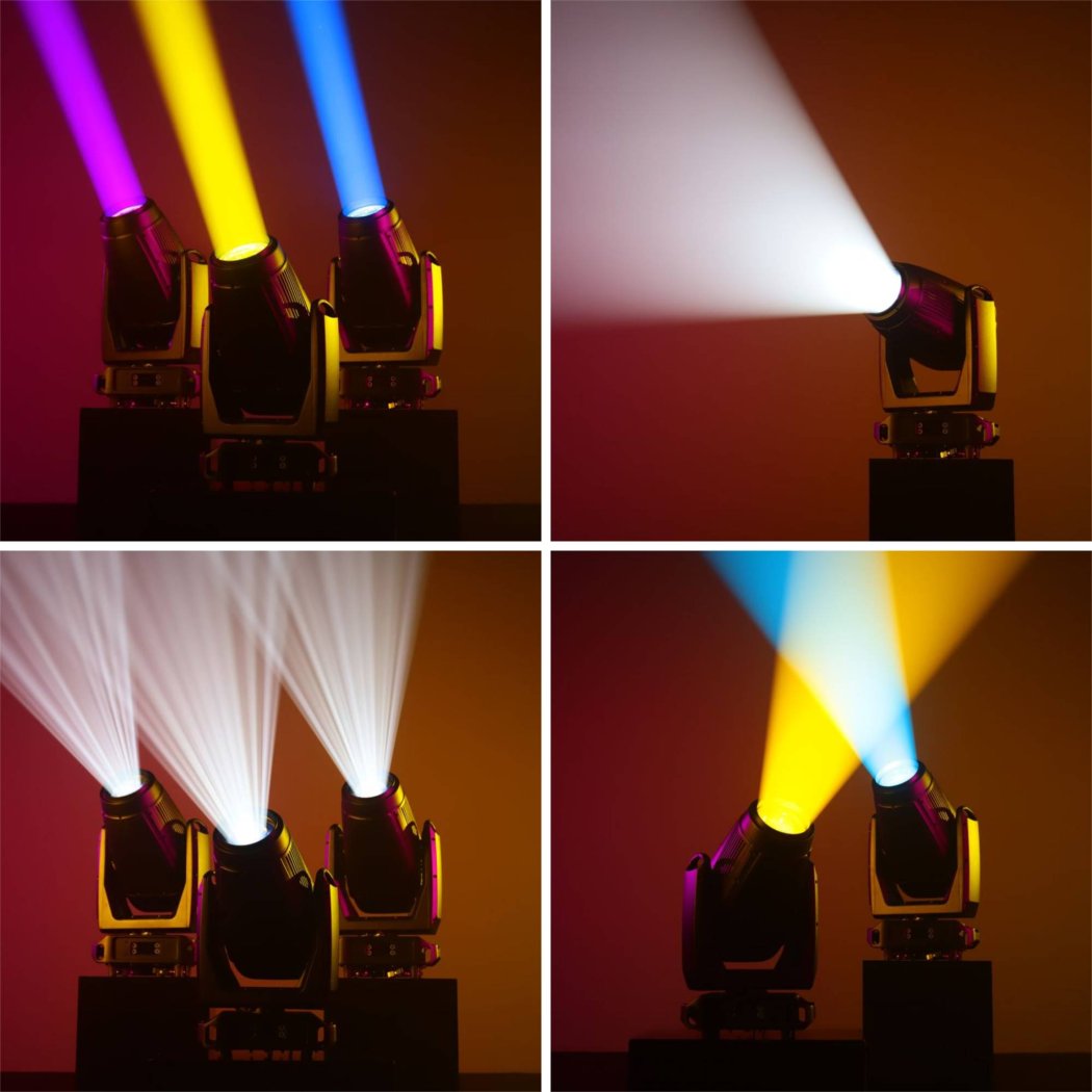 interchangeable variable speed rotation gobos, 8 static gobos, linear CMY + CTO for infinity color mixing, 5 colors wheel + CRI, 4 rotating blades framing system, frost effect, linear animation wheel,29kg.